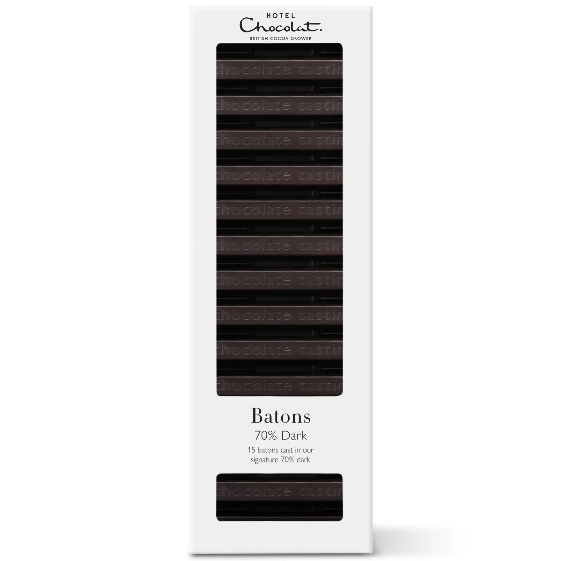 Our 70% Dark Chocolate Batons have a deep and indulgent cocoa flavour profile, without being too rich. Although these batons don’t contain any milk, they’re still ridiculously smooth and boast an astonishing melt. That’s because we use a high percentage of cocoa butter in our creations – other chocolatiers use vegetable oil, but why waste any of the goods that the humble cocoa bean provides?