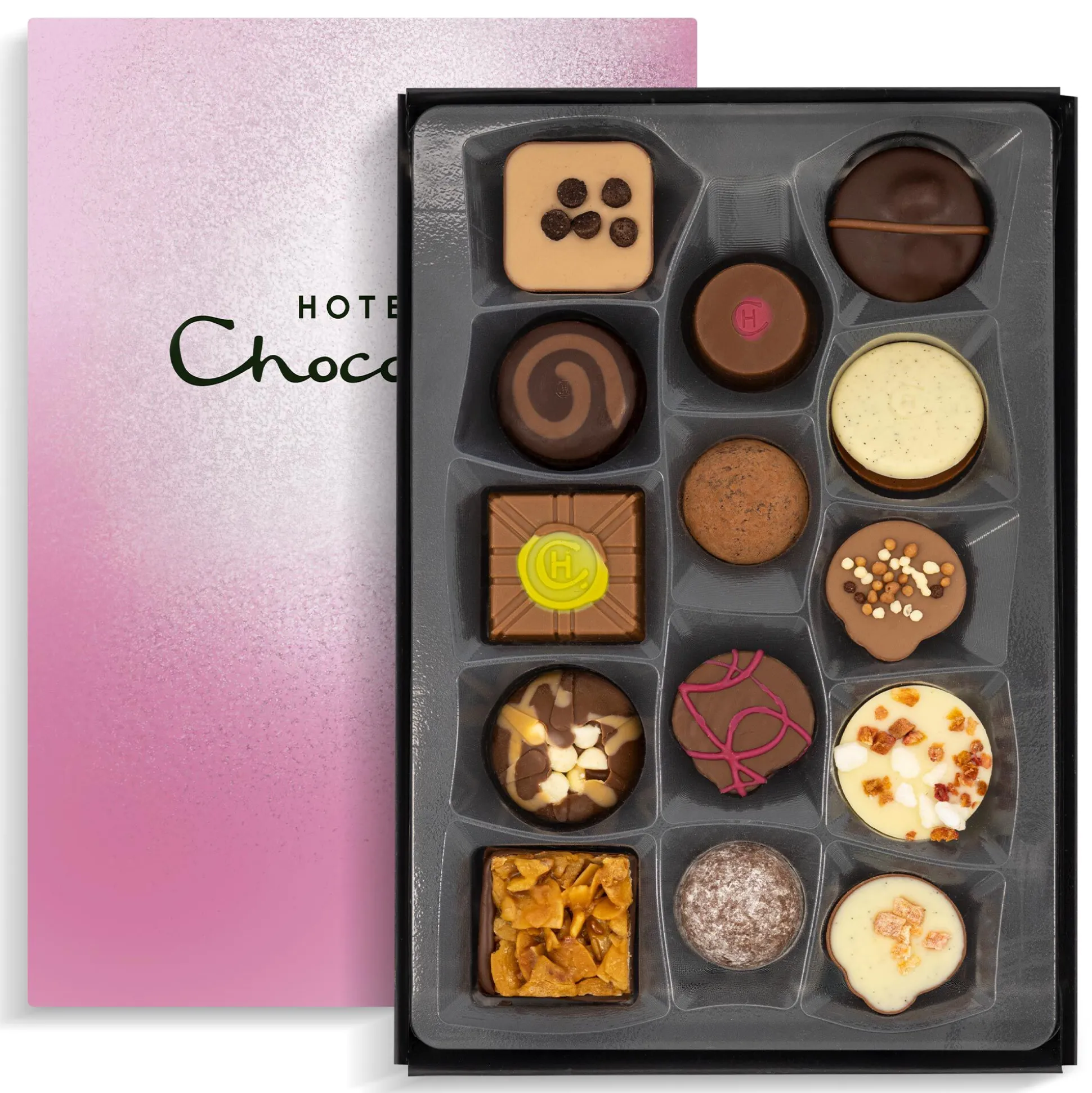 Fancy something a little more adventurous? The Everything H box brings together some vibrant dessert flavours — reimagined. Enjoy puddings like Carrot Cake, Billionaires Shortbread, and Fudge Sundae, all in chocolate form. Each irresistible mouthful brings together velvety-smooth chocolate with contrasting elements of crisp and crunch.
