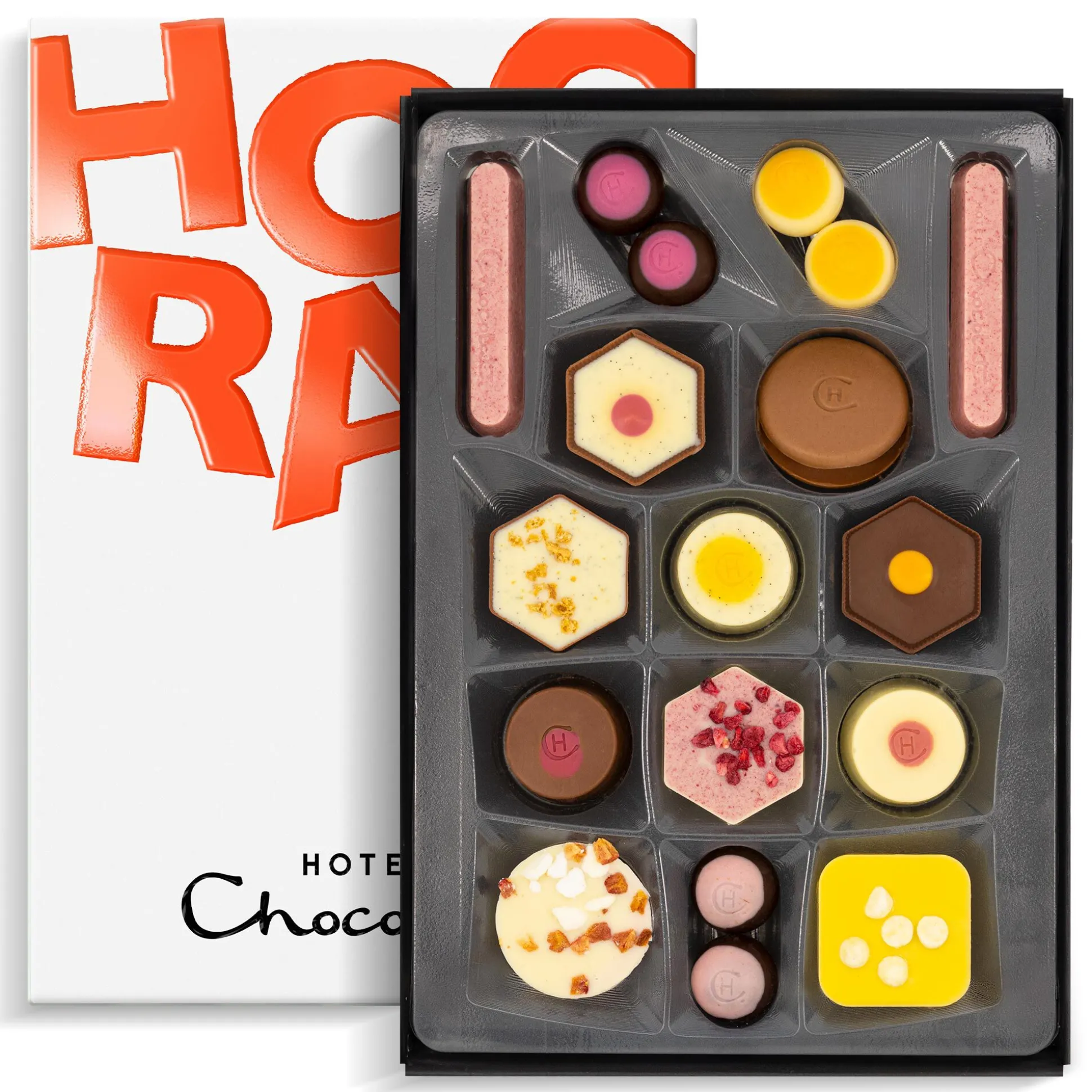 With updated packaging inspired by the heroic cacao pod, and a variety of new fruit-filled favourites, the Exuberantly Fruity H-box has something for everyone.